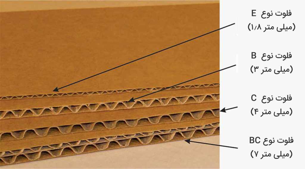 در خط تولید کارتن سازی ما، کارتن های پنج لایه از سه لایه لاینر و دو لایه فلوت استفاده می شود که به ترتیب لایه های فلوت در میان لایه های لاینر با چسب و حرارت قرار داده می شوند.